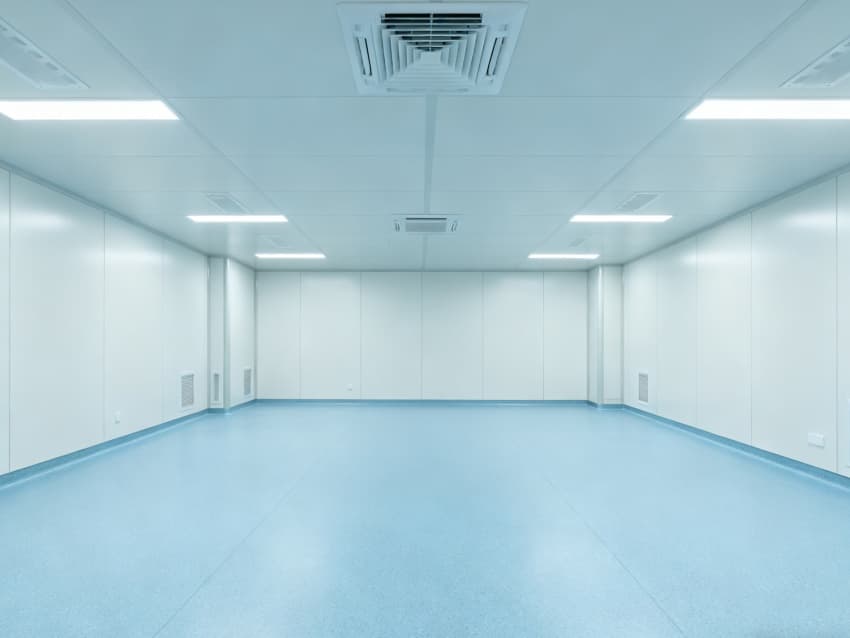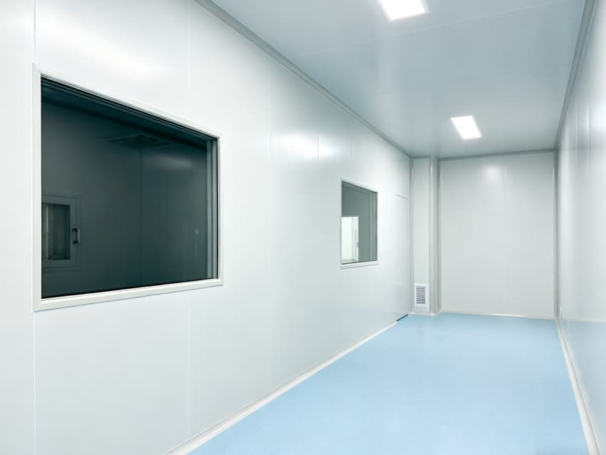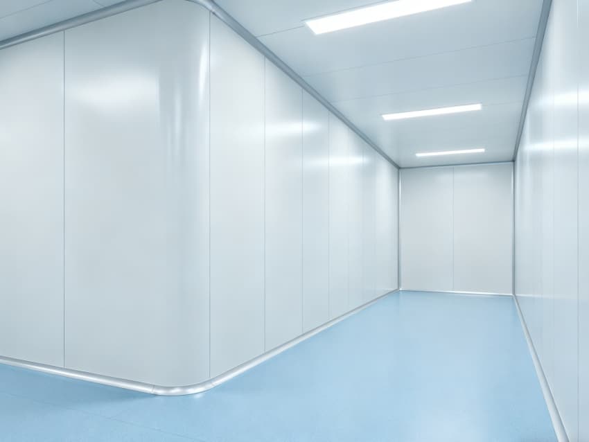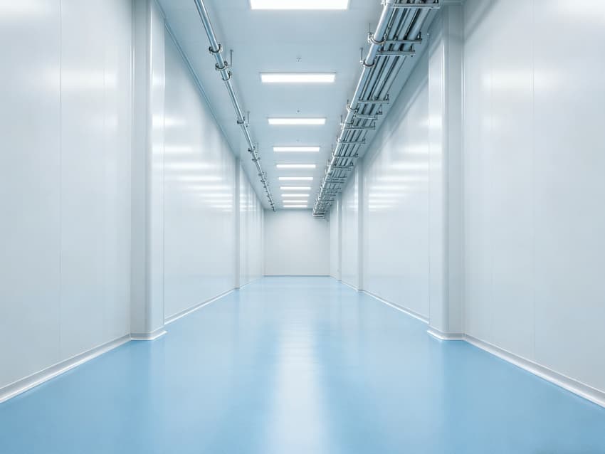 內(nèi)部按功能劃分為六大潔凈區(qū)域:核心潔凈生產(chǎn)區(qū)(淺藍(lán)色防滑防霉地面)預(yù)留開闊空間,滿足發(fā)酵罐、純化設(shè)備等后期安裝;頂部潔凈送風(fēng)區(qū)通過規(guī)整風(fēng)閥系統(tǒng),實(shí)現(xiàn)萬級潔凈度均勻送風(fēng);墻面過渡區(qū)采用圓弧轉(zhuǎn)角設(shè)計,避免粉塵堆積;密閉觀察區(qū)設(shè)雙層鋼化觀察窗,兼顧生產(chǎn)監(jiān)控與無菌隔離;縱向設(shè)備預(yù)留區(qū)保留8米凈高,適配大型凍干設(shè)備動線;輔助緩沖區(qū)銜接車間入口,搭配風(fēng)淋系統(tǒng),實(shí)現(xiàn)人員/物料潔凈過渡。整體空曠布局既保障潔凈操作空間,又滿足皖北生物制藥企業(yè)靈活擴(kuò)產(chǎn)需求,為本地藥企提供合規(guī)、高效的生產(chǎn)載體。