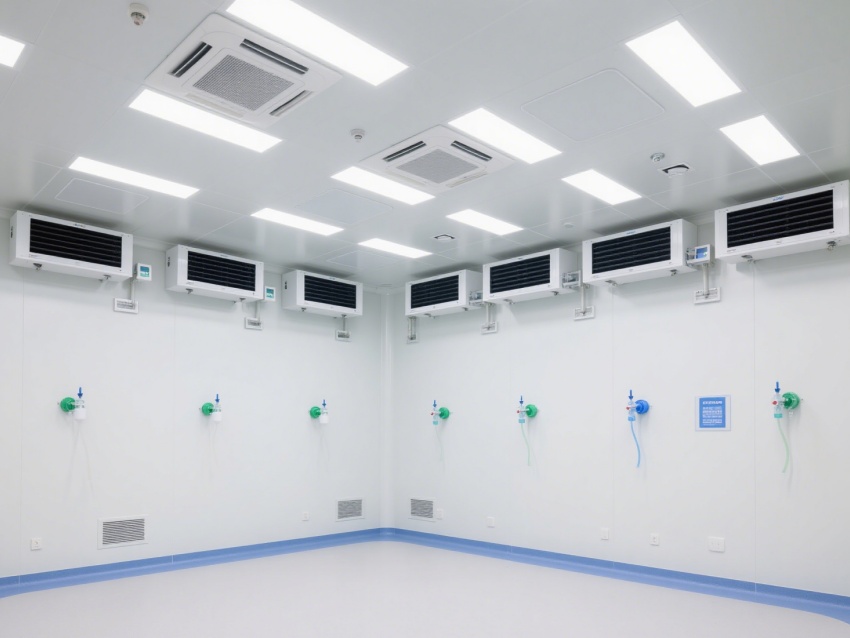 空氣凈化系統(tǒng)配備高效過(guò)濾器,通過(guò)精準(zhǔn)氣流控制維持高潔凈度,為醫(yī)療操作提供無(wú)菌環(huán)境。空間布局科學(xué),設(shè)置更衣區(qū)(配備不銹鋼潔凈柜),確保人員進(jìn)入前的潔凈處理;各類醫(yī)療氣體接口(如氧氣、壓縮空氣)分區(qū)明確、標(biāo)識(shí)清晰,滿足診療過(guò)程的氣體供應(yīng)需求。
