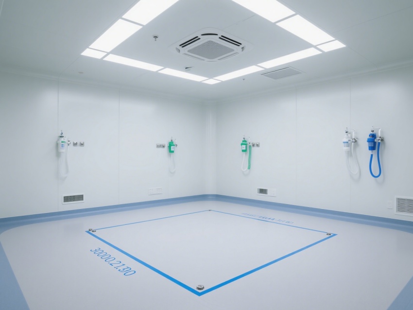 該醫(yī)療無(wú)塵室是為醫(yī)療診療與精密操作打造的專業(yè)潔凈空間。室內(nèi)以白色為主調(diào),搭配藍(lán)色標(biāo)識(shí)系統(tǒng),墻面、地面采用無(wú)縫抗菌材質(zhì),便于清潔消毒,有效防止微生物與灰塵污染。